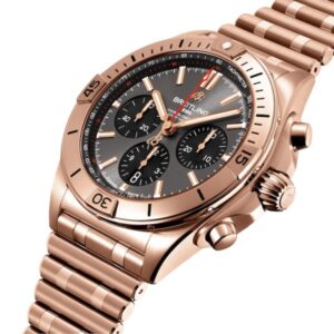 Replica Breitling Chronomat Men Automatic Grey 18ct Rose Gold Watch RB0134101B1R1