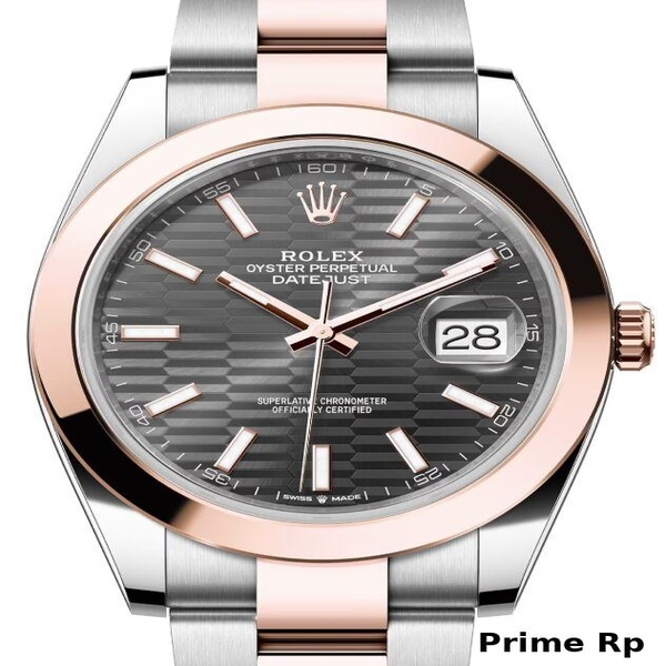 This replica Datejust 41mm radiates modern elegance with its textured slate dial and smooth rose gold bezel. The two-tone Oyster bracelet adds a refined, sporty finish to this luxurious replica timepiece.